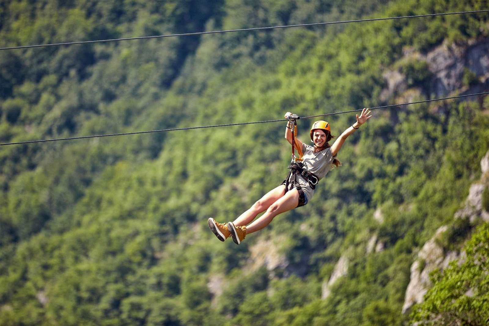- Ziplines up to 1,400 feet long and heights up to 185 feet